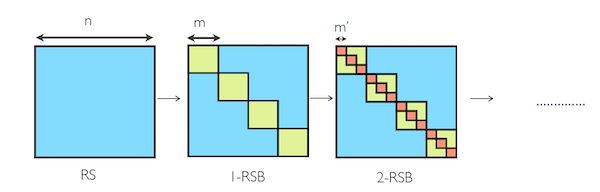 - This procedure can be iteratively repeated within each of the inner blocks, and after $k$ iterations it leads to k step RSB or k-RSB. An example of 2-RSB is shown in the rightmost figure with corresponding parameters $q_0, q_1$ and $q_2$.