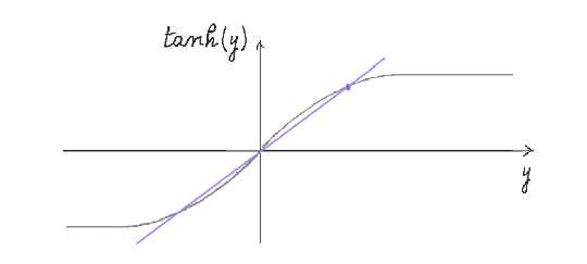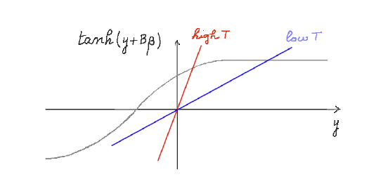 \[m_i = \tanh[\beta\sum_j J_{ij}m_j - \beta^2 \sum_j J_{ij}^2 (1-m_j^2)m_i]\]The equivalent equation for the minima in the case of the Ising model was given by $m=\tanh(\beta m)$. The TAP equations correspond to the stationary points for the following free energy
